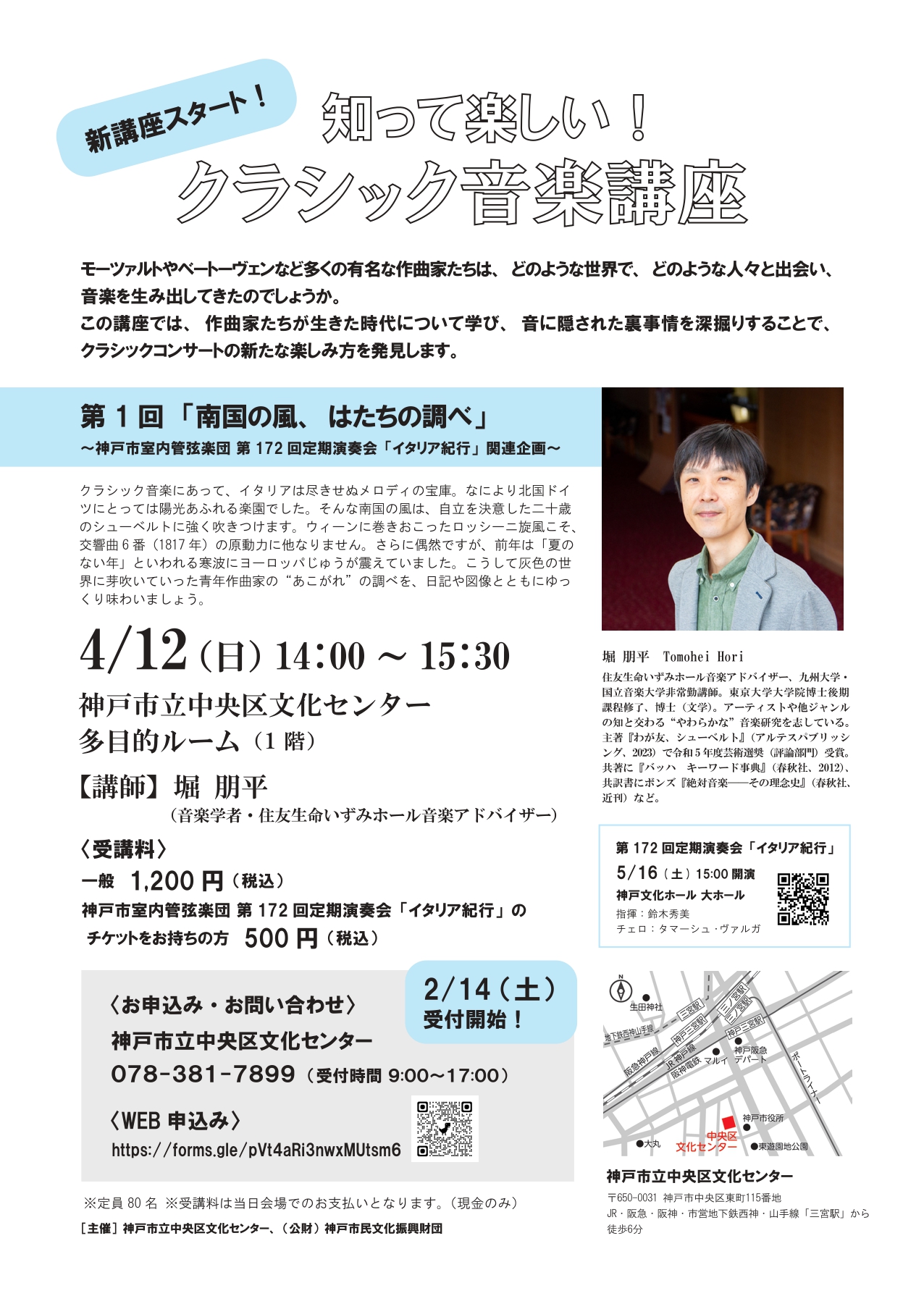 神戸市室内管弦楽団 第172回定期演奏会『イタリア紀行』